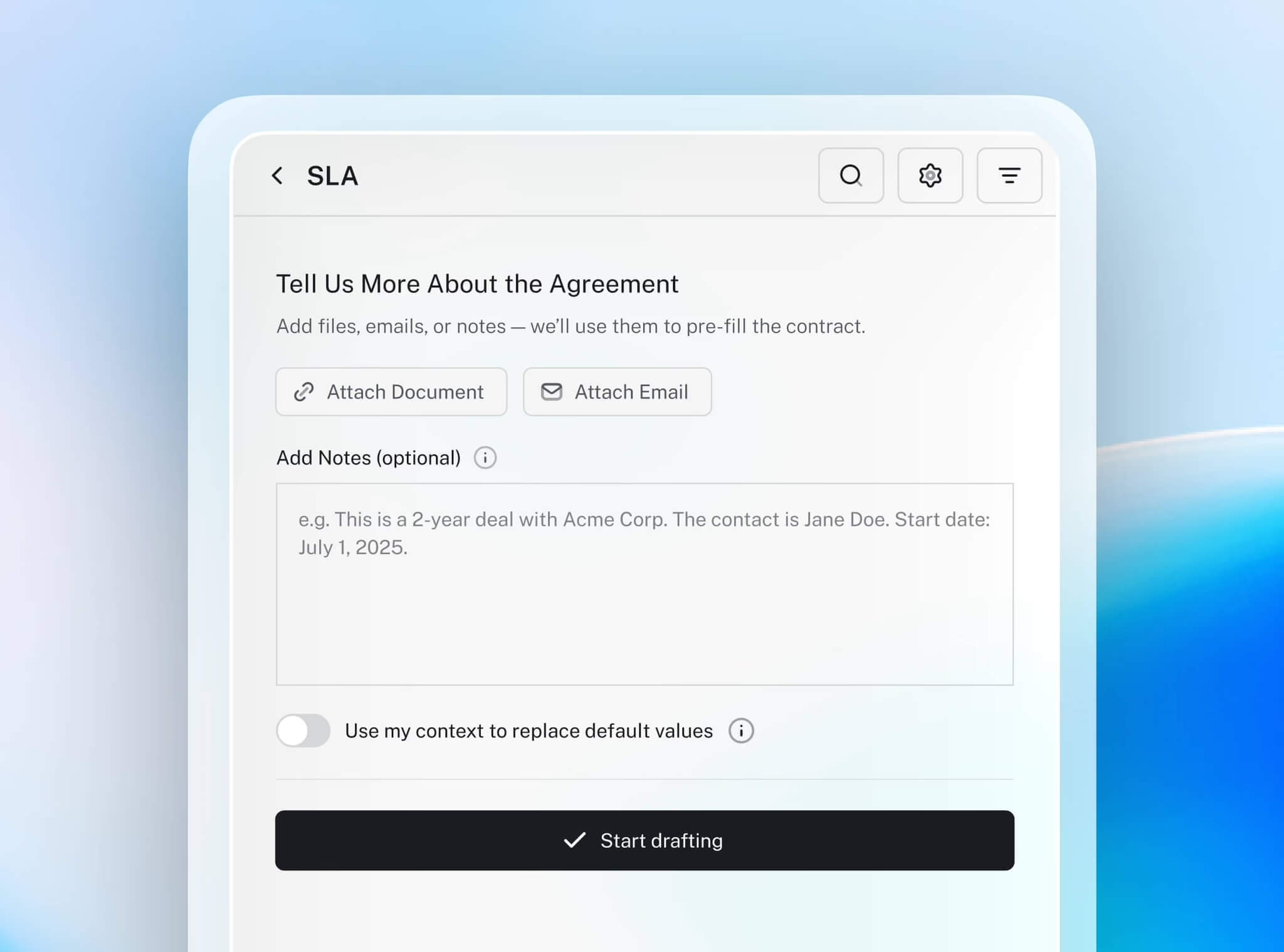 Starting a contract from a blank page takes time your team doesn't have. Hunting through old agreements for the right clause, reformatting templates that were last updated three years ago, chasing colleagues for the approved language on liability caps, it adds hours to work that should take minutes.