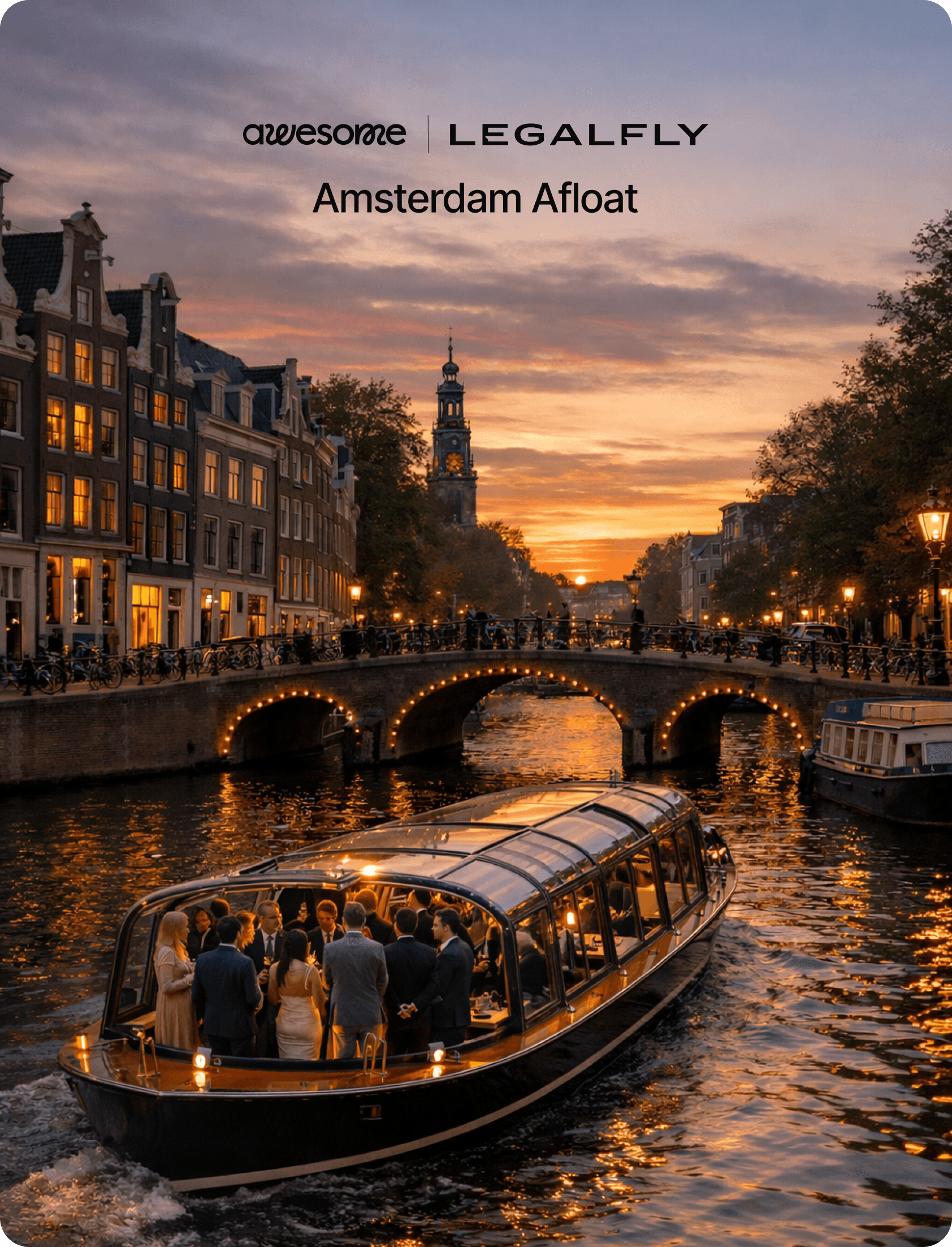 Join LEGALFLY and Awesome Compliance for an evening on Amsterdam’s canals. Two hours aboard a classic Salonboot boat, with good drinks & bites, relaxed networking, and straight-talk conversations.