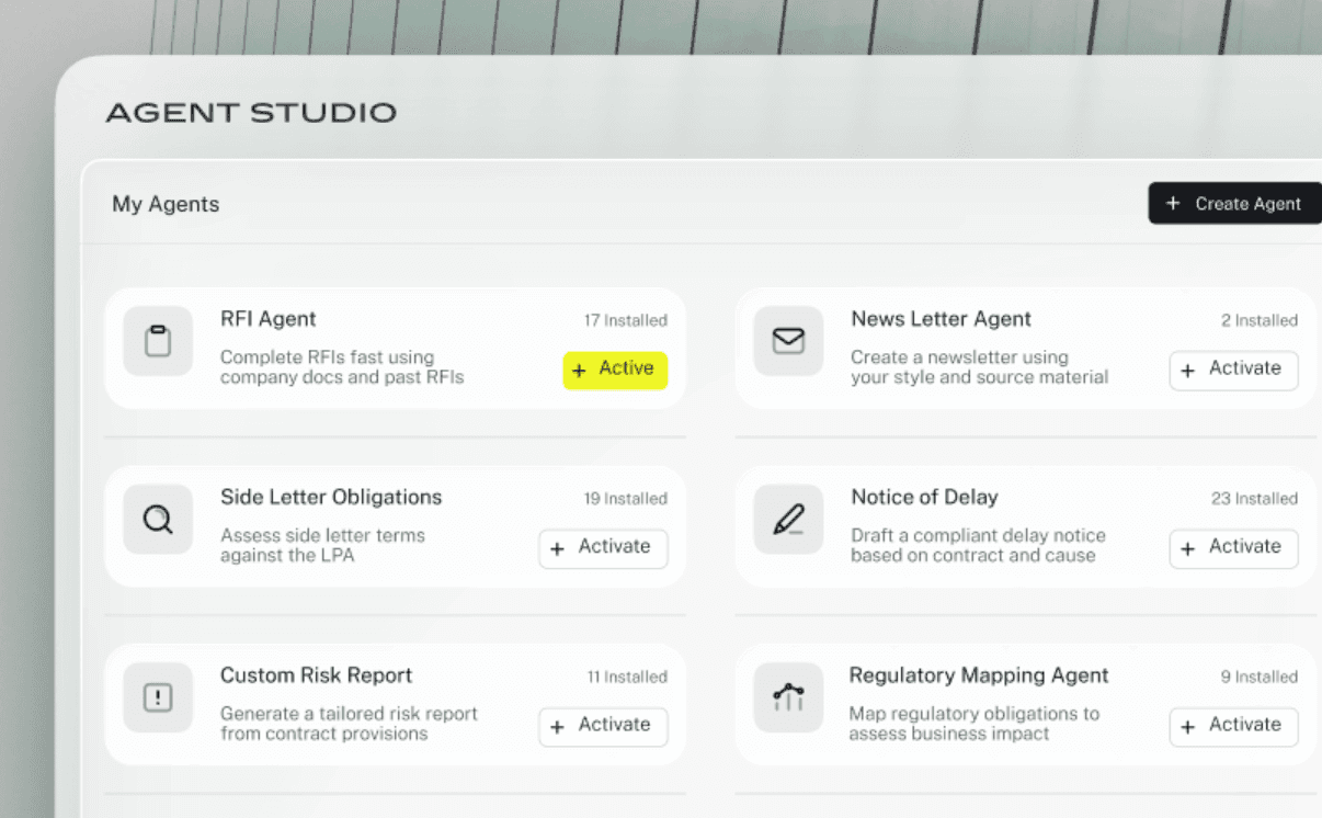 Customisable agents or playbooks: The platform should allow configuration based on your organisation's specific policies, risk thresholds, and clause preferences, encoding your procurement strategies into scalable, repeatable workflows.