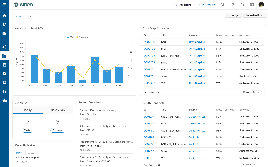 Sirion connects contractual obligations to actual supplier performance and commercial outcomes, allowing deviations to be detected when terms are not being met in delivery. It is particularly suitable for services categories where leakage occurs after signature rather than in sourcing. Enterprises use it to govern outsourcing, IT services, and long term managed agreements where compliance and delivery risk extend well beyond contract execution.