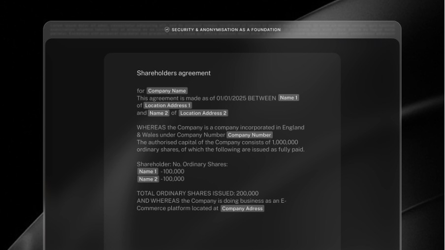It is the only legal AI platform that anonymises documents before processing. Client data, counterparty details, and confidential deal terms are removed before any AI analysis begins. This allows teams to use AI on live transactions without exposing sensitive information, which is often a requirement for internal approval in banks and asset managers.