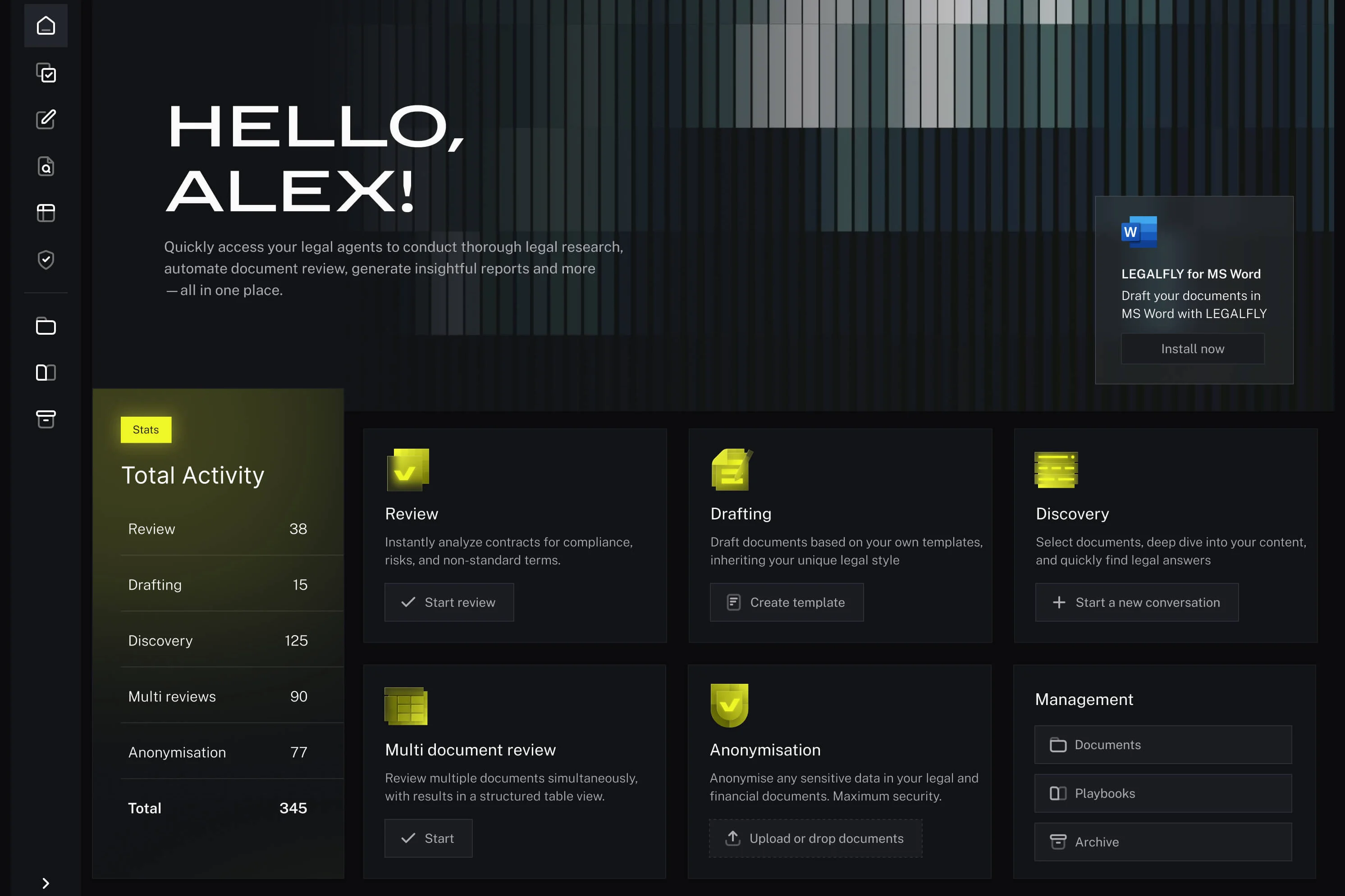 LEGALFLY is a market leading legal AI platform for in-house teams that prioritises speed, privacy, and explainability in contracting and compliance workflows. It offers legal agents for contract review, drafting, regulatory tracking, legal research and due diligence as well as custom agents aligned to your clauses and risk tolerances. LEGALFLY anonymises all sensitive data before processing, adding an additional layer of security compared to most legal AI tools. It is fully integrated with Microsoft 365 so lawyers can work in familiar tools without heavy setup.
