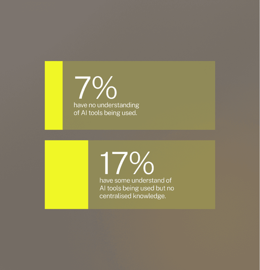 Although this helps them work faster and potentially produce better work, these tools are likely not vetted. The data entered is often sensitive. There is no visibility into how that data is stored or shared. One in 14 firms do not know what AI tools are in use across the business.