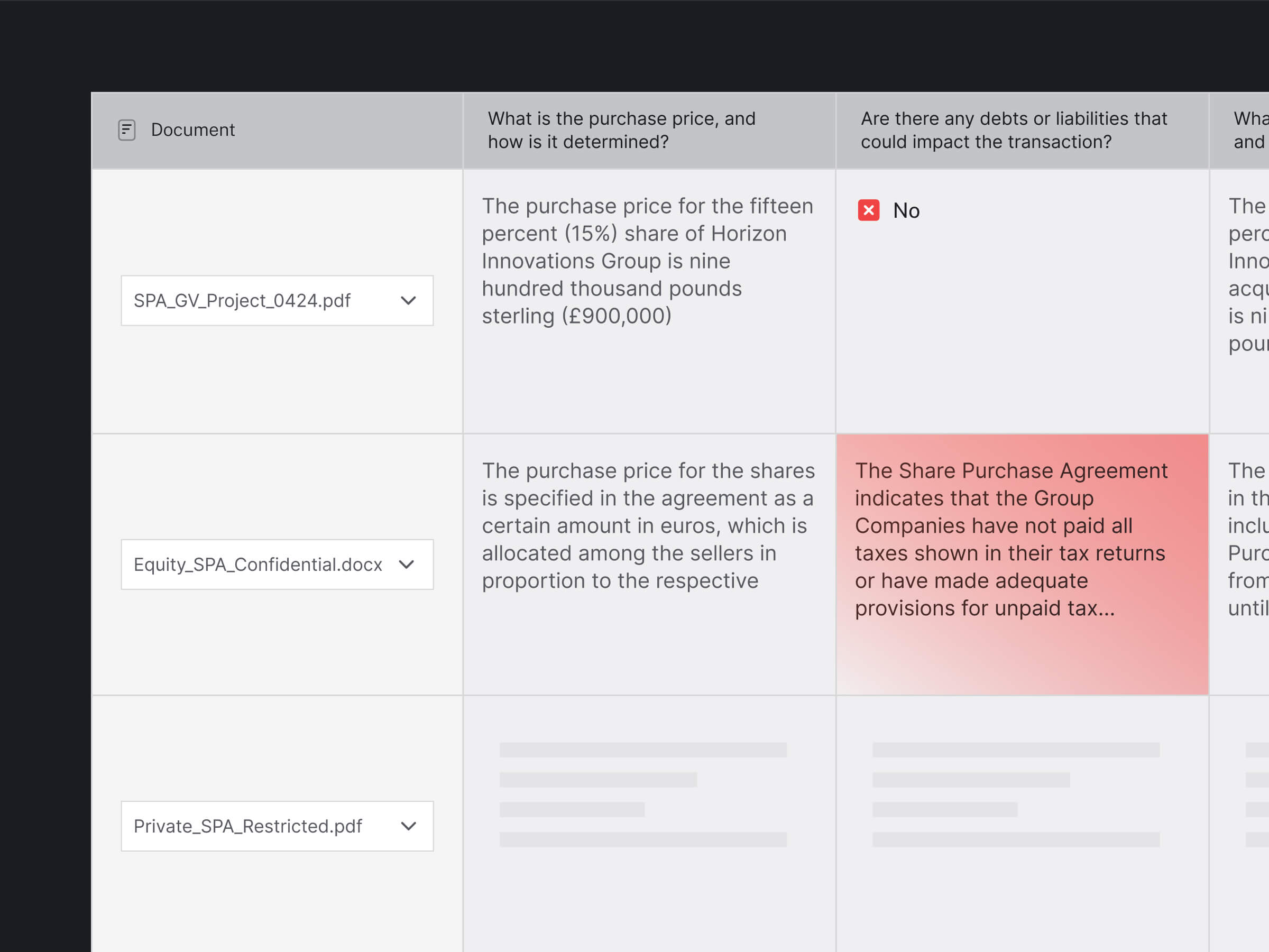 Due diligence is where M&A deals stall. Legal teams must review hundreds of contracts, surface risks, and report quickly, all under time pressure.