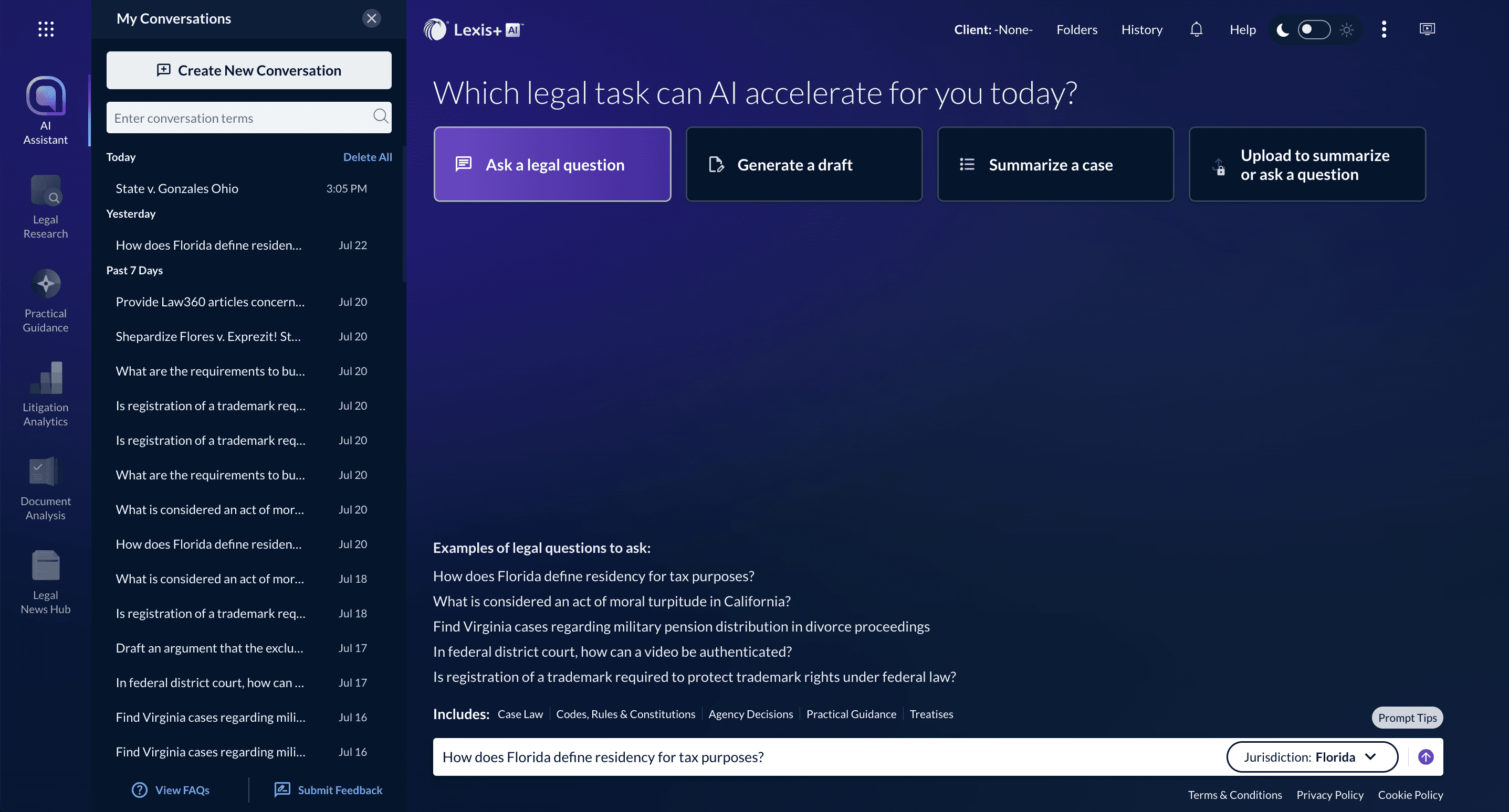 Lexis+ AI | Legal Research & Analytics | AI-driven legal research with citations, predictive litigation analytics, and drafting for legal arguments. |