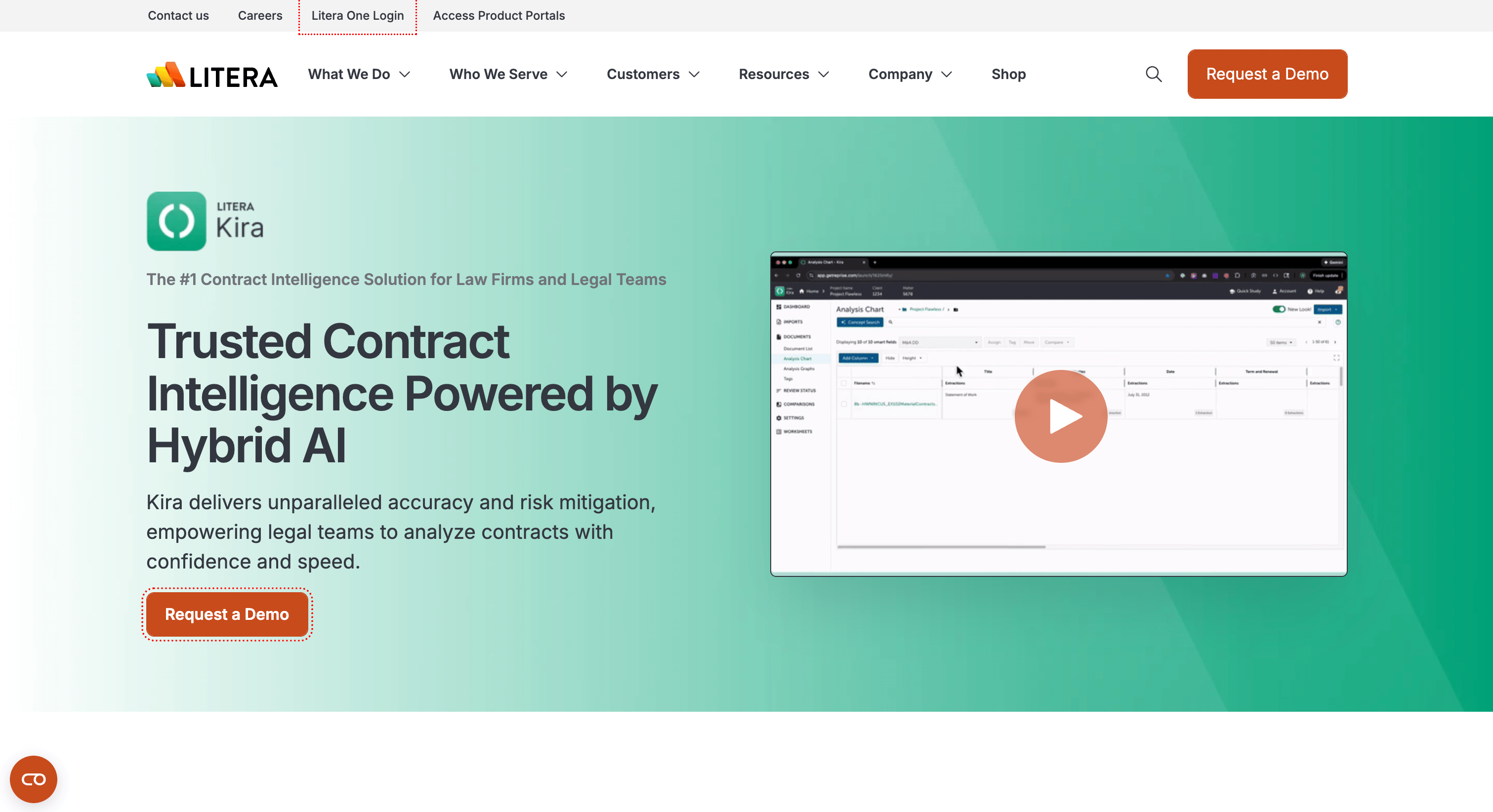 Kira is designed for a professional services context. It’s one of the legal tech companies with a track record in law firm and Big Four deployments. Its configuration requirements and pricing reflect firm-side use rather than in-house operations.